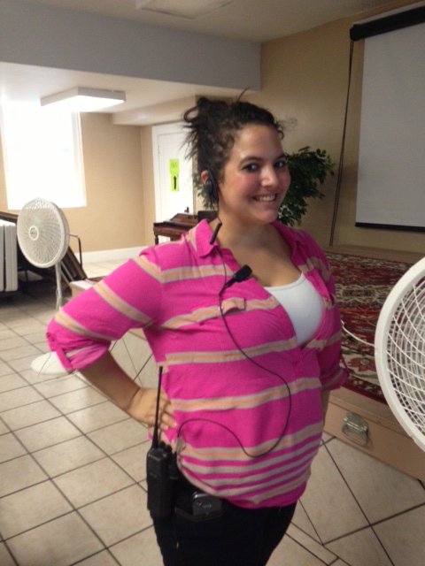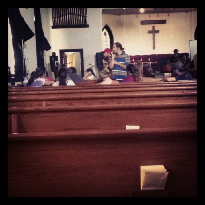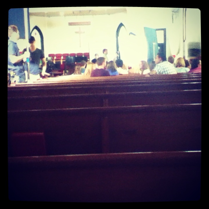 My first day on set began in the morning at a church and boy did it get hot. You probably don’t realize this because you are so used to them, but air conditioners make a lot of noise. So, when the mic’s you use for filming are really sensitive, off go the air conditioners. Did I mention we are filming in Austin in the middle of the summer?? Therefore, as you can guess it got really hot and we were continually working to cool the place down between camera position changes.
